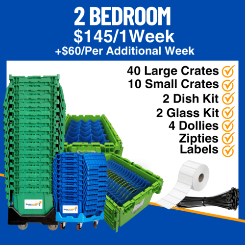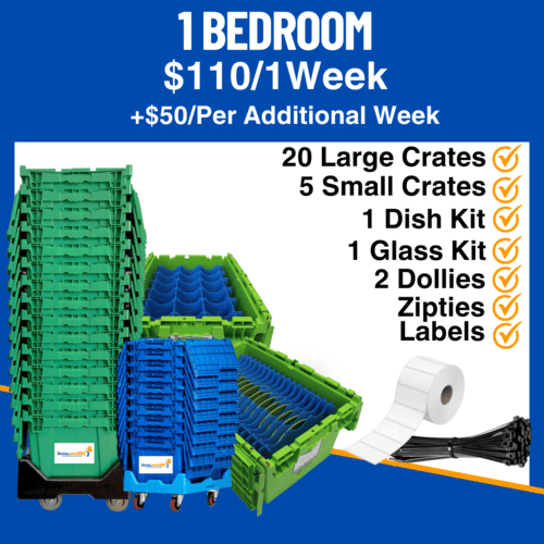 All packages include FREE delivery and pick-up, ensuring a seamless rental experience. With carefully curated options, our packages are designed to meet the needs of various living spaces, providing just the right amount of crates and supplies to make your packing process efficient and hassle-free. Here’s a closer look at what’s included: